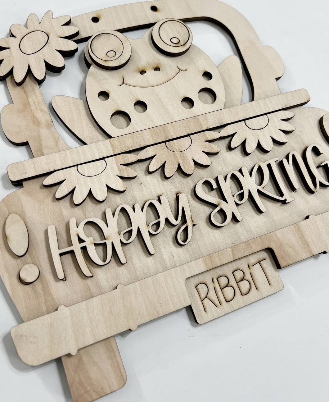Happy Hoppy Spring Cute Ribbit Frog Truck Doorhanger