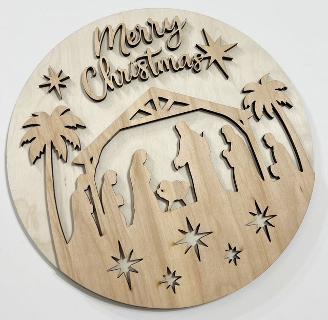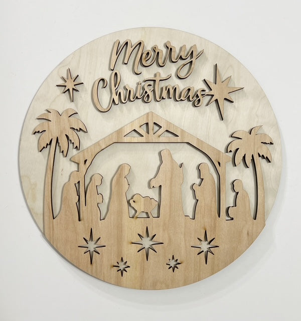 Merry Christmas Nativity Manger Silhouette Round Doorhanger