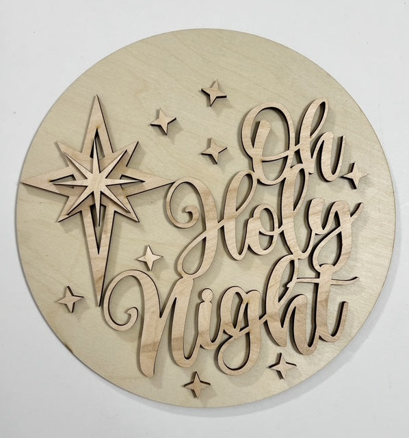 Oh Holy Night Fancy Script Christmas Round Doorhanger