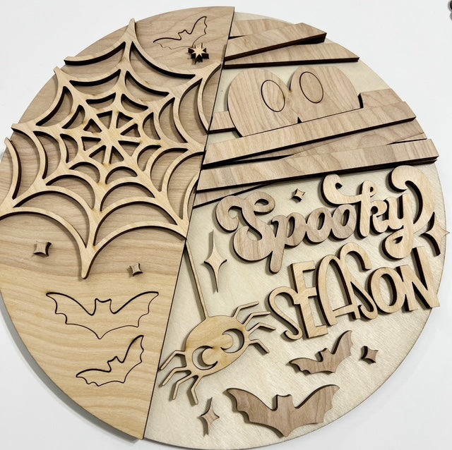 Spooky Season Mummy Bats Spiderweb Halloween Round Doorhanger