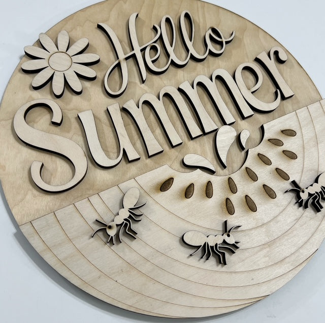 Hello Summer Cute Watermelon and Ants and Flower Round Doorhanger 10"