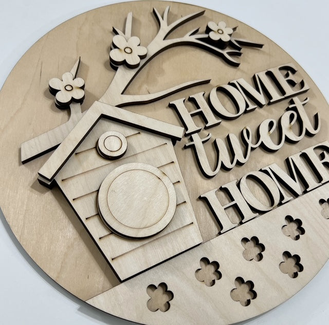 Home Tweet Home Birdhouse with Branch and Flowers Round Doorhanger 10"